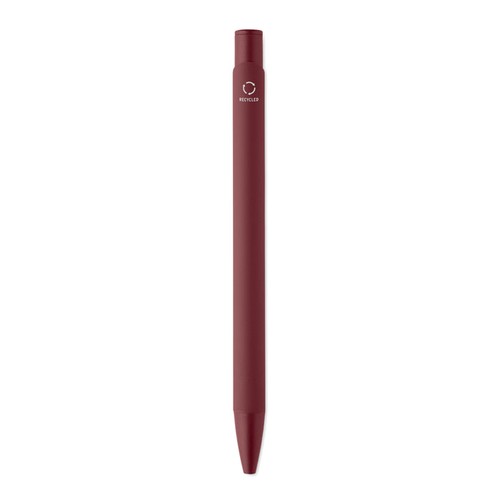 Stylo à poussoir en aluminium recyclé avec clip en fer et corps caoutchouté de couleur. Encre bleue.
