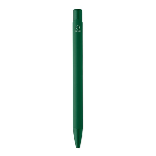 Stylo à poussoir en aluminium recyclé avec clip en fer et corps caoutchouté de couleur. Encre bleue.