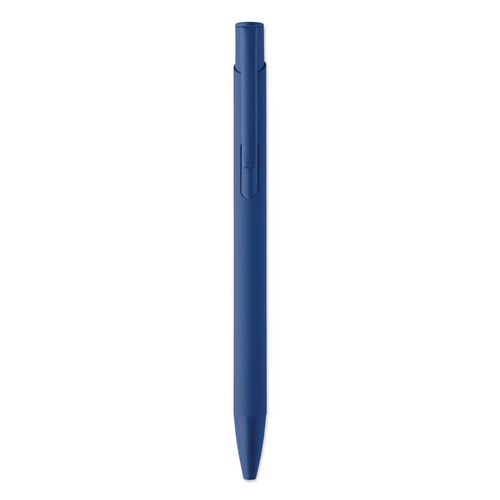 Stylo à poussoir en aluminium recyclé avec clip en fer et corps caoutchouté de couleur. Encre bleue.