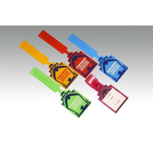 L’étiquette à bagage est en acrylique gris et en aluminium noir mat et peut être personnalisé avec une élégante gravure laser ou une tampographie monochrome ou bicolore.