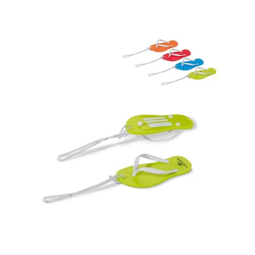 Etiquette à bagage en forme de tong. Cette étiquette vous fera rêver à votre destination de vacances. Son autre avantage est de vous aider à retrouverez facilement votre bagage grâce à sa forme particulière en forme de tong. Existe dans 4 couleurs. Possibilité de marquage en 4 couleurs pantones. Fabriqué dans une usine audité BSCI. Tous nos produits sont testés et certifiés, et répondent aux normes sociales.Matières :PVC