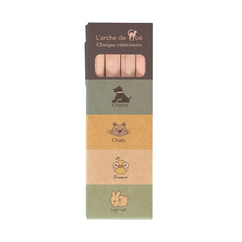 ETUI CARTON KRAFT ou BLANC de 4 CRAYONS de COULEUR ECO 8,7 cm, HEXAgonaux, SANS VERNIS, tête coupée