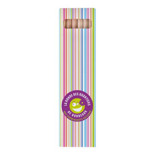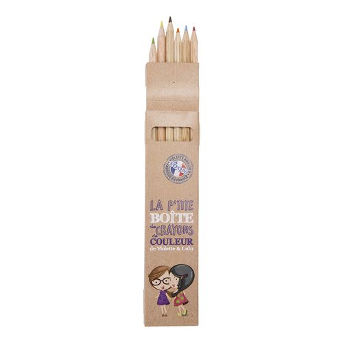 ETUI CARTON KRAFT ou BLANC de 6 CRAYONS de COULEUR ECO 17,6 cm, HEXAgonaux, SANS VERNIS, tête coupée
