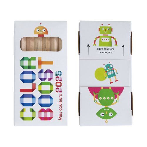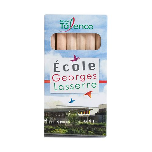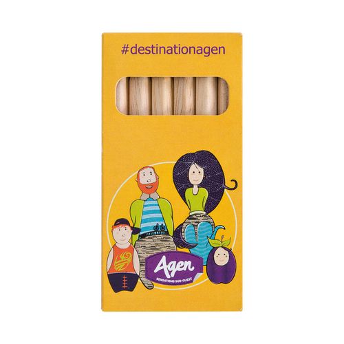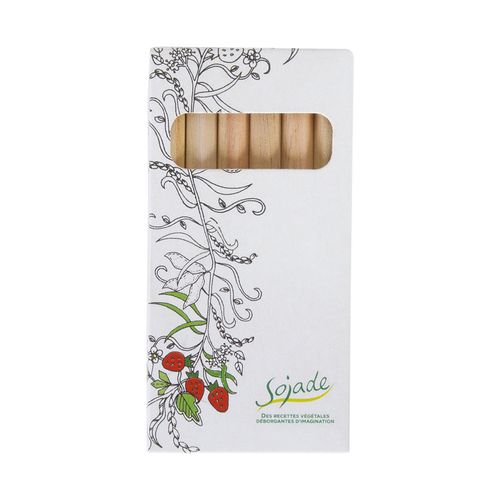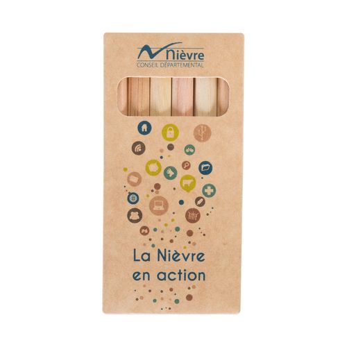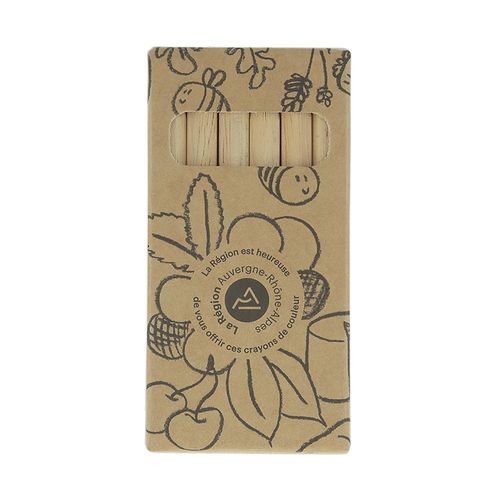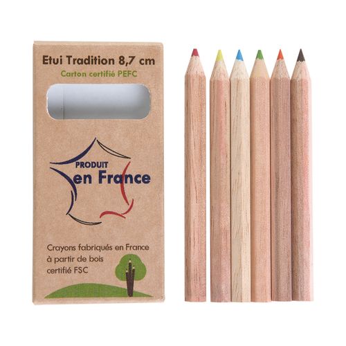 ETUI CARTON KRAFT ou BLANC de 6 CRAYONS de COULEUR ECO 8,7 cm, HEXAgonaux, SANS VERNIS, tête coupée