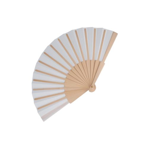 Éventail en bois & R- PET. Disponible dans une variété de couleurs vives avec poignée en bois; idéal pour les événements en plein air et les journées chaudes d'été.Matières :R- PET, Bois