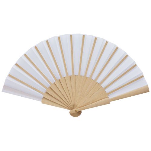 Éventail à main en bois et polyester, disponible dans une large gamme de couleurs.