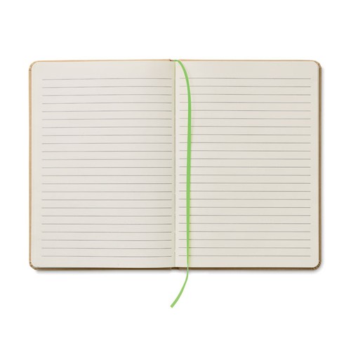 Carnet A5 avec couverture rigide en carton recyclé. 160 pages lignées (80 feuilles en papier recyclé). Bande élastique de fermeture et ruban marque- page. FSC®- certified | FSC MIX CREDIT, P7.1, FSC- C213206