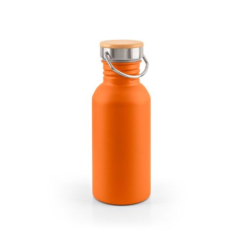 Bouteille en acier inoxydable à simple paroi (90 % recyclée). Le couvercle en bambou est muni d'une poignée en acier inoxydable pour faciliter le transport. Capacité maximale de 580 ml. Disponible dans une large gamme de couleurs. Livrée dans un coffret cadeau en papier kraft. Le produit étant fabriqué à partir de matériaux naturels, la couleur du produit ainsi que le résultat de l'impression peuvent varier d'un produit à l'autre. ø70 x 183 mm