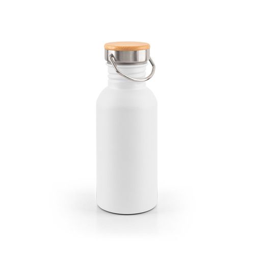 Bouteille en acier inoxydable à simple paroi (90 % recyclée). Le couvercle en bambou est muni d'une poignée en acier inoxydable pour faciliter le transport. Capacité maximale de 580 ml. Disponible dans une large gamme de couleurs. Livrée dans un coffret cadeau en papier kraft. Le produit étant fabriqué à partir de matériaux naturels, la couleur du produit ainsi que le résultat de l'impression peuvent varier d'un produit à l'autre. ø70 x 183 mm
