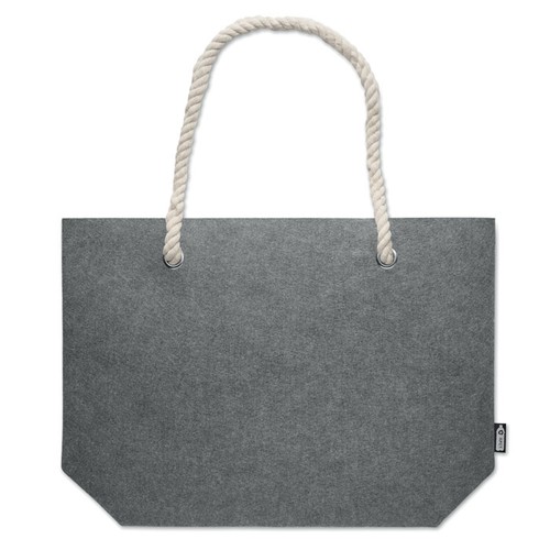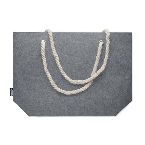 Sac shopping en feutre RPET avec poignée en corde. Epaisseur du feutre : 2 mm.
