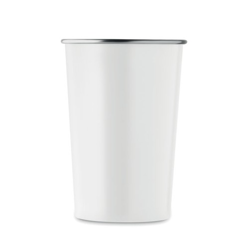 Gobelet réutilisable en acier inoxydable recyclé (90 % d'acier inoxydable recyclé et 10 % d'acier inoxydable). Capacité : 350 ml. La simple paroi n’empêche pas le transfert de chaleur.