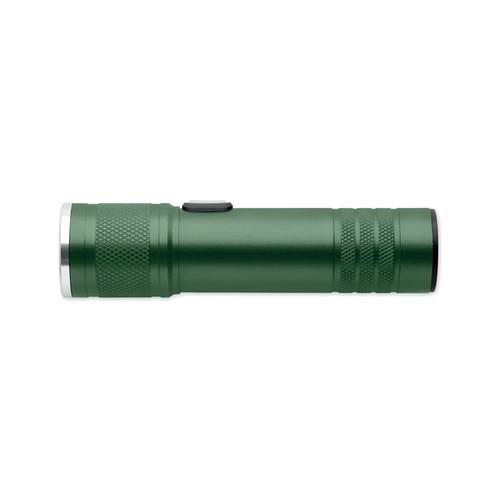Lampe torche rechargeable et extensible en aluminium recyclé. 100 lumens avec 3 niveaux de luminosité et fonction zoom. Batterie rechargeable intégrée de 800 mAh. Câble de recharge inclus.