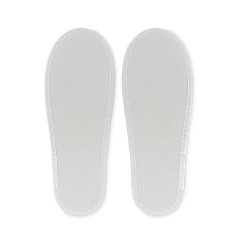 Paire de chaussons d'hôtel en polyester présentés dans une pochette non tissée. Taille EUR 43 - 44.