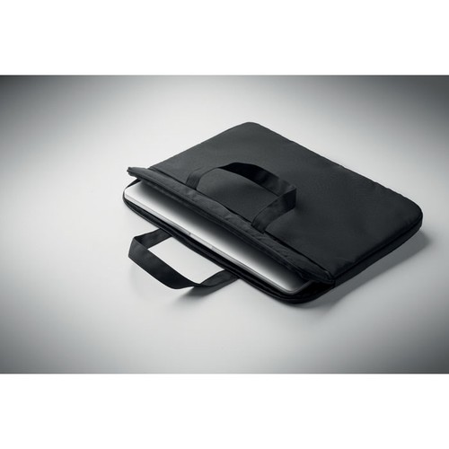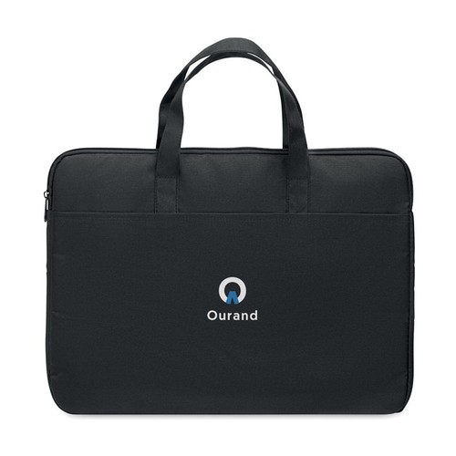 Sacoche pour ordinateur portable 15'' en polyester 300D RPET avec poignées et support pour trolley au verso.
