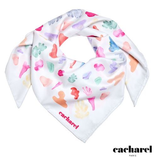 The “Apolline” scarf in off- white showcases soft, colorful hues and organic shapes inspired by nature’s flowing forms. Its watercolor design adds a refreshing and vibrant touch to any outfit. Made from vegan silk (Polyester twill), this scarf measures 90 x 90 cm, offering versatility to be styled in multiple ways.