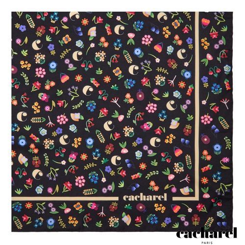 The Seraphine scarf is a playful, graphical reinterpretation of a Liberty- inspired print—an aesthetic closely tied to the Cacharel brand DNA—brought to life through vibrant, colorful elements that add a spirited touch while remaining effortlessly easy to match. Available in black, white, and bright blue, it drapes with lightness and offers a fresh, expressive accent that naturally complements a wide range of looks.