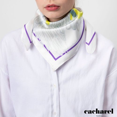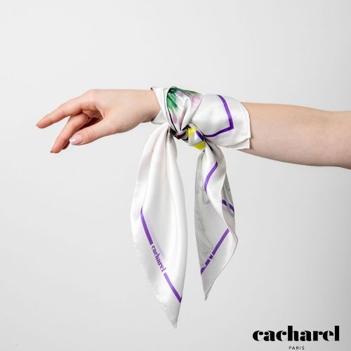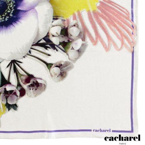 Le foulard "Madeleine" est fabriqué dans la soie la plus fine. Son vibrant imprimé floral sur fond blanc s'inspire d'un jardin exotique. 100% soie. Dimension carrée : 650 x 650 mm. Article livré dans sa pochette prestige Cacharel.