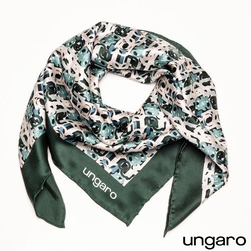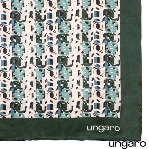 Les écharpes carrées en soie "Umberta" sont fabriquées à partir de matériaux de la plus haute qualité en soie. Cet imprimé joue avec art avec le logo iconique "Ungaro".