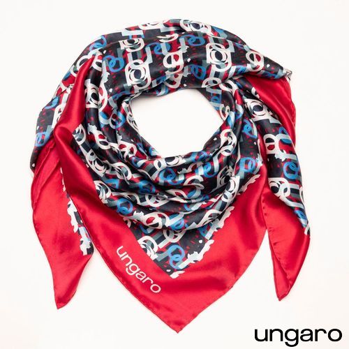 Les écharpes carrées en soie "Umberta" sont fabriquées à partir de matériaux de la plus haute qualité en soie. Cet imprimé joue avec art avec le logo iconique "Ungaro".