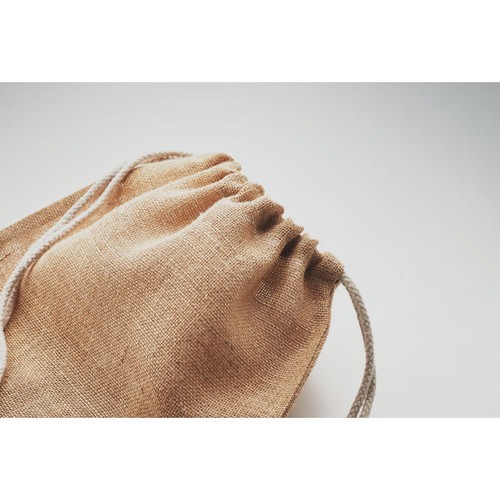 Sac à cordon en jute avec cordon en coton.