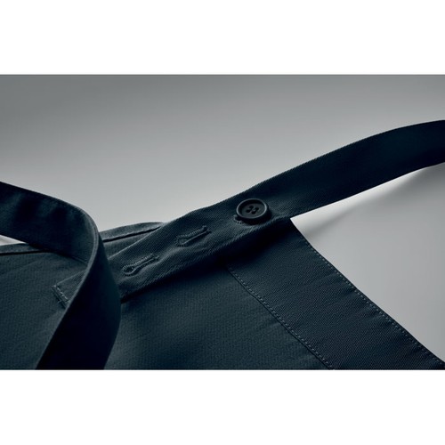 Tablier à bavette réglable avec 1 grande poche frontale à 2 compartiments en coton biologique 240 gr/m². Avec bouton de réglage sur le tour de cou.