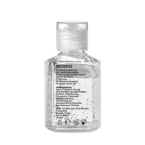 Gel nettoyant pour les mains en bouteille PET avec capuchon rabattable. Capacité 30 ml. Composition sans alcool. Cet article est classé dans la catégorie cosmétique.