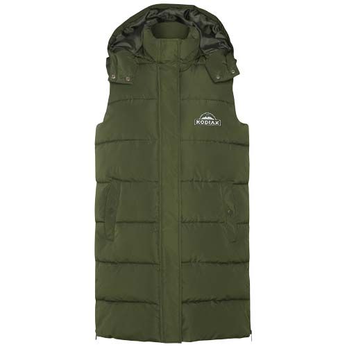 Gilet rembourré avec capuche amovible. Col montant. Fermeture zippée sur le devant dissimulée par rabat. Deux poches avec fermeture par bouton pression. Ouvertures latérales avec fermeture zippée. Accès intérieur à la poitrine. Hydrofuge.