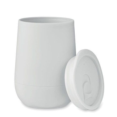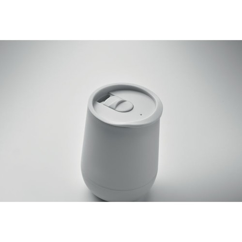 Gobelet à double paroi en PP avec couvercle à ouverture coulissante en PS et ABS. Capacité : 300 ml.