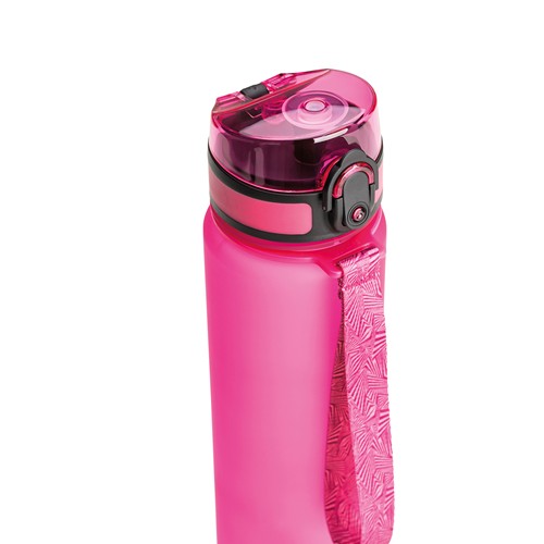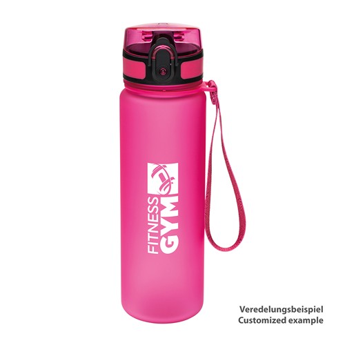 Cette bouteille en Tritan est idéale pour le sport avec ouverture d'une main, und dragonne. Longue durée de vie et capacité de 500 ml.