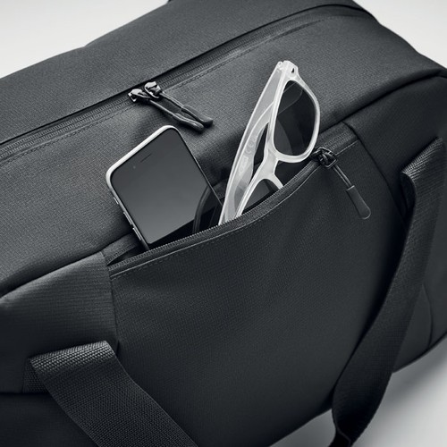 Sac de voyage- sport en 300D ripstop avec détails en PU et poche frontale zippée. Il dispose d'une poche intérieure et de 2 petits compartiments rembourrés. Porte- trolley à l'arrière.