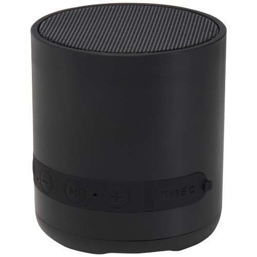 L’enceinte sans fil Hunor de 3 W Bluetooth® est fabriquée à partir de plastique recyclé et dispose d’un port de charge de type C, de commandes de volume, d’un bouton Lecture/Pause/Appel et d’un microphone intégré. Grâce à la fonctionnalité TWS (True Wireless Stereo), vous pouvez coupler deux haut- parleurs pour une expérience sonore stéréo.