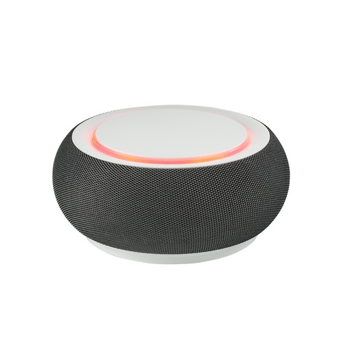 L’appareil blanc est habillé d’un textile gris chaud et s’intègre à chaque cadre grâce à son design moderne. Finition sur la face supérieure par impression UV ou tampographie. Un câble de chargement USB- C est compris dans la livraison.