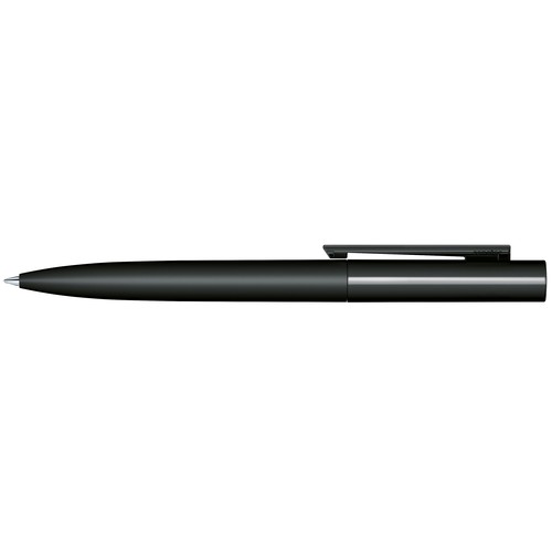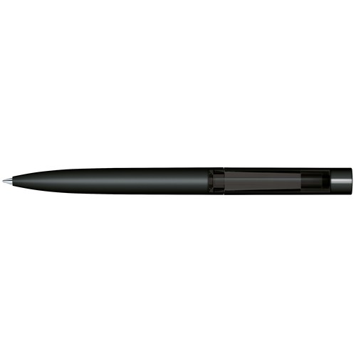 Stylo à bille à mécanisme tournant.Surface du corps en plastique noir avec,habillage soft touch (effet peau de pêche),partie supérieure opaque noire, clip transparent,brillant de couleur,recharge senator® magic flow G2 (1,0 mm)