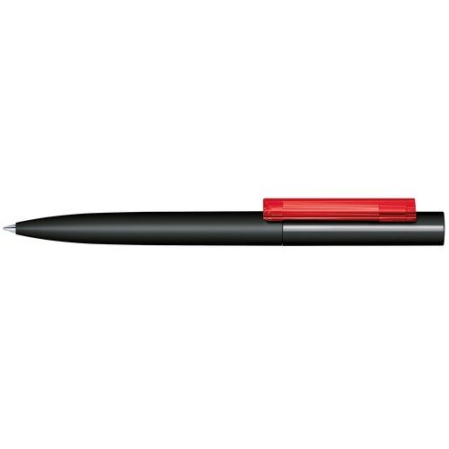 Stylo à bille à mécanisme tournant.Surface du corps en plastique noir avec,habillage soft touch (effet peau de pêche),partie supérieure opaque noire, clip transparent,brillant de couleur,recharge senator® magic flow G2 (1,0 mm)