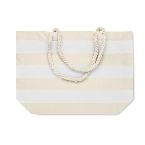 Sac de plage ou de shopping rayé en coton avec anses en corde. 220 gr/m².