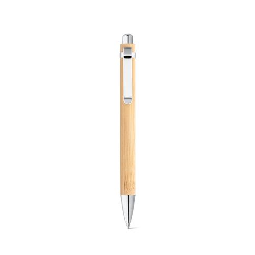 Stylo à bille en bambou avec clip métallique. Le produit étant fabriqué à partir de matériaux naturels, la couleur du produit ainsi que le résultat de l'impression peuvent varier d'un produit à l'autre. ø11 x 138 mm