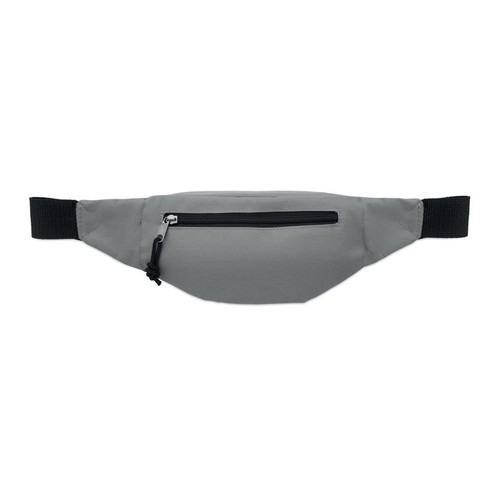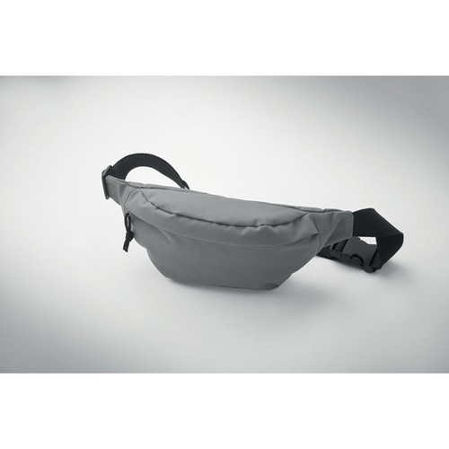 Sac banane en polyester 600D RPET avec compartiment principal zippé et compartiment arrière caché zippé.