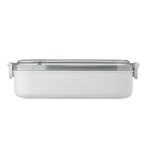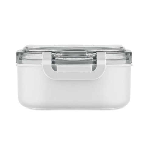 Boîte à lunch en PP avec intérieur en acier inox recyclé. Couvercle AS étanche qui garde les aliments frais et sécurisés pendant le transport. Capacité de 750 ml sans plateau et de 650 ml avec.