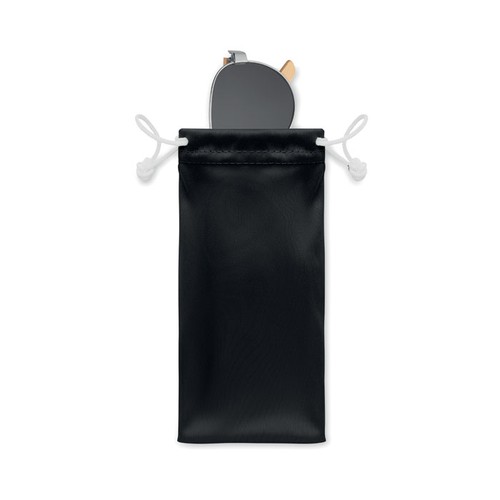 Lunettes de soleil avec branches en bambou et verres miroirs colorés dans une pochette en microfibre. Protection UV400. Le bambou est un produit naturel, et présente de légères variations de couleur, de décoration et de tailles.