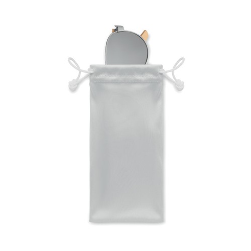 Lunettes de soleil avec branches en bambou et verres miroirs colorés dans une pochette en microfibre. Protection UV400. Le bambou est un produit naturel, et présente de légères variations de couleur, de décoration et de tailles.