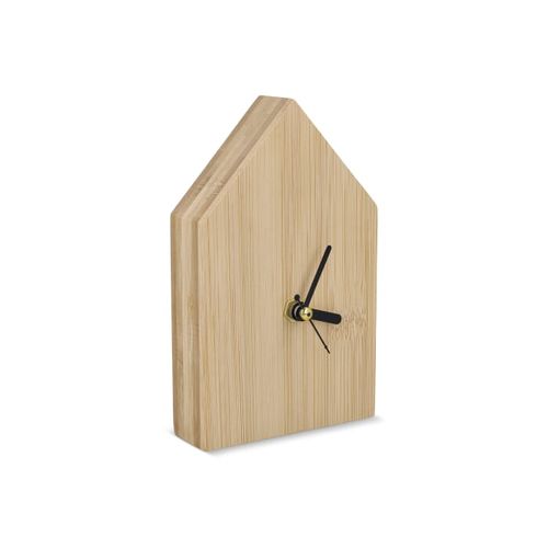 L'horloge de bureau Homestead, avec son design en forme de maison et sa finition en bambou, ajoute un charme chaleureux à votre espace de travail. Fonctionnelle et décorative, elle affiche l'heure avec ses aiguilles pour les heures, les minutes et les secondes. Livrée avec piles et emballée dans une boîte cadeau.Matières :Bambou