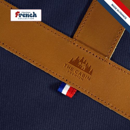 «Nos productions sont artisanales : les coloris de coton et l'épaisseur du cuir peuvent légèrement varier en fonction des lots. Si vous gravez le cuir, le coloris final de la gravure pourra légèrement varier en fonction des peaux, y compris sur une même commande.» -