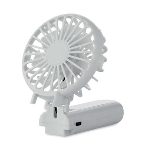 Ventilateur portable pliable en ABS avec 3 niveaux de vitesse. Peut être utilisé comme ventilateur de poche ou de bureau. Comprend une batterie au lithium 14500 remplaçable et rechargeable de 500 mAh.