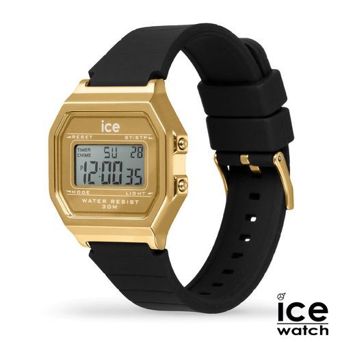 Elevate your style with the **ICE digit retro- Metal Gold Mirror Black Small** watch by Ice- Watch. This chic timepiece features a striking black dial encased in durable stainless steel, perfectly complemented by a contemporary silicone strap. Weighing just 28g, it’s lightweight and comfortable for everyday wear. With a water resistance of 3 ATM, it’s ideal for the modern woman who values both functionality and fashion. Embrace elegance and add a touch of vintage flair to any outfit with this stunning accessory designed to turn heads.