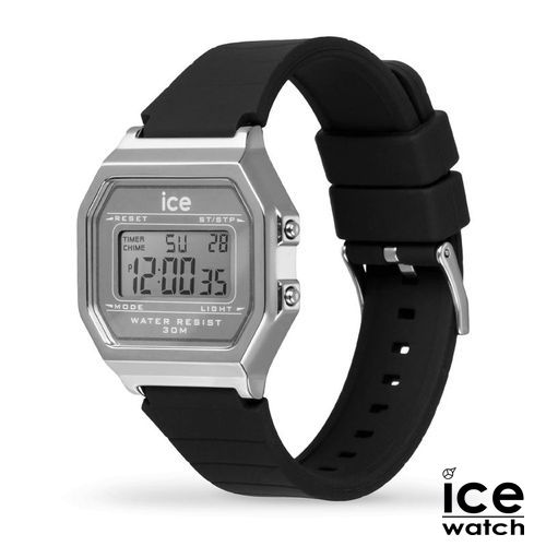 Introducing the ICE Digit Retro- Metal Silver Mirror- Black Small watch from Ice- Watch, where chic meets functionality. This stunning timepiece features a sleek black dial elegantly complemented by a stainless steel and silicone band, making it the perfect accessory for any modern woman. With water resistance up to 3 ATM, it’s designed for daily wear and adventure alike. Its lightweight design (only 28g) ensures comfort throughout the day. Stand out with this fashionable watch that effortlessly blends sophistication and style. Elevate your accessory game today!