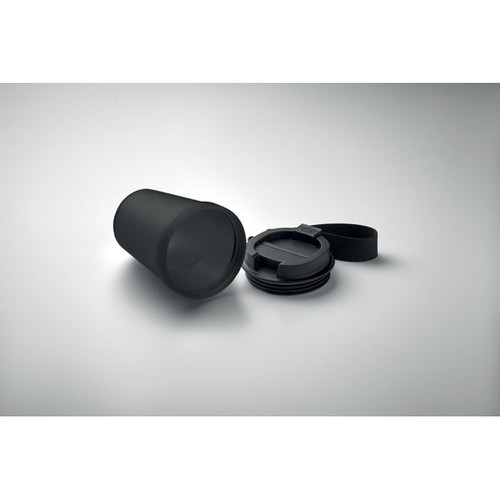 Gobelet simple paroi en PP, avec dragonne en polyester RPET. Anti fuite. Capacité : 300 ml. Comme il s'agit d'un gobelet à simple paroi, un transfert de chaleur peut encore se produire.