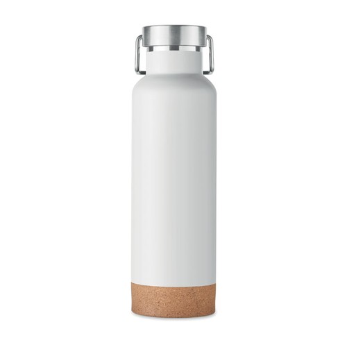 Bouteille à double paroi à vide isolant en acier inoxydable recyclé et base en liège avec bouchon à poignée. Anti fuite. Capacité : 500 ml. (90 % d'acier inoxydable recyclé et 10 % d'acier inoxydable).