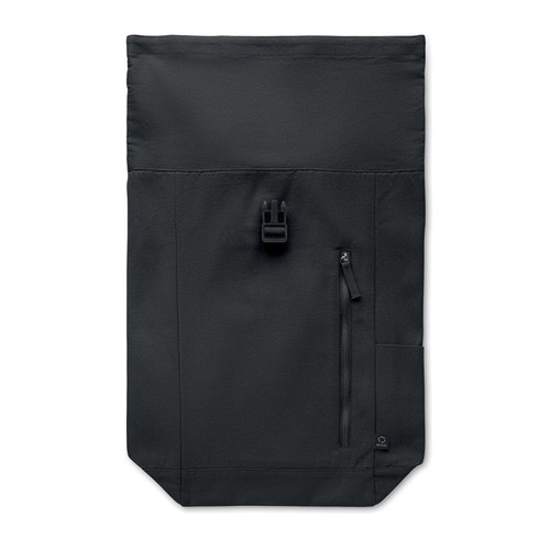 Sac à dos enroulable avec fermeture auto- agrippante en coton recyclé (80%) et polyester recyclé (20%) de 390 gr/m². Poche frontale zippée.