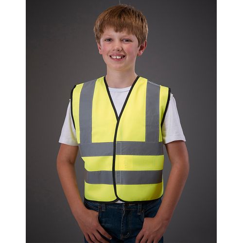 - veste de sécurité enfant avec bandes réfléchissantes verticales et horizontales devant et dos