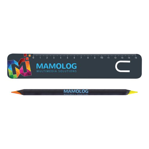 KIT BUREAU bi- coul comprenant 1 REGLE CARTON 15 cm + 1 CRAYON bi- coul FLUO- FLUO 17,6 cm Prestige BLACK taillé des 2 côtés VERNIS INCOLORE
